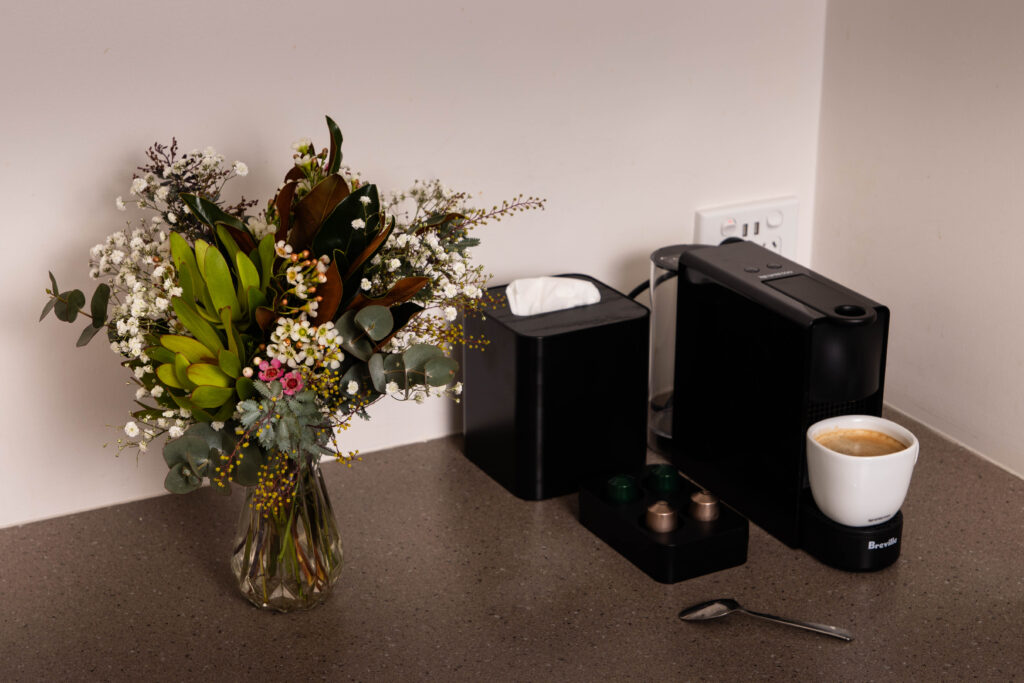 Each room is fully equipped with reverse cycle air-conditioning, private bathrooms, Wi-Fi, smart TVs, king beds, Nespresso Machines, fridges & complimentary water.